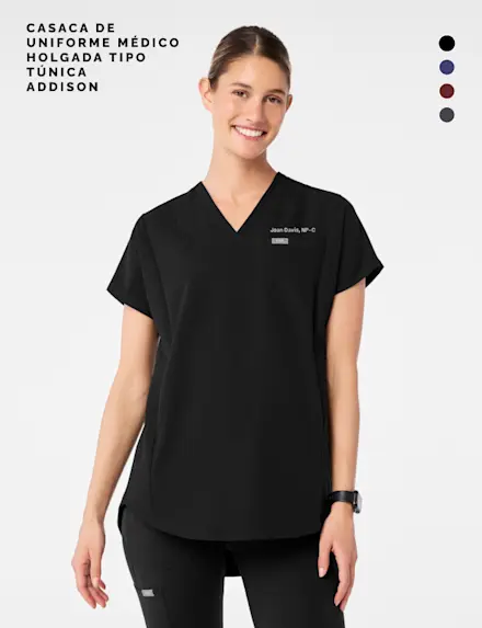 Casacas de uniforme médico que llevan la cobertura hasta el extremo.